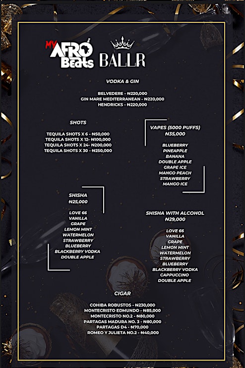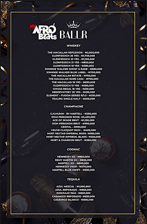 Come join us for a night of Afrobeats music, perfromances, dancing, and good vibes at Lagos premiere nightlife venue; Ballr Lagos from 10PM till Dawn.